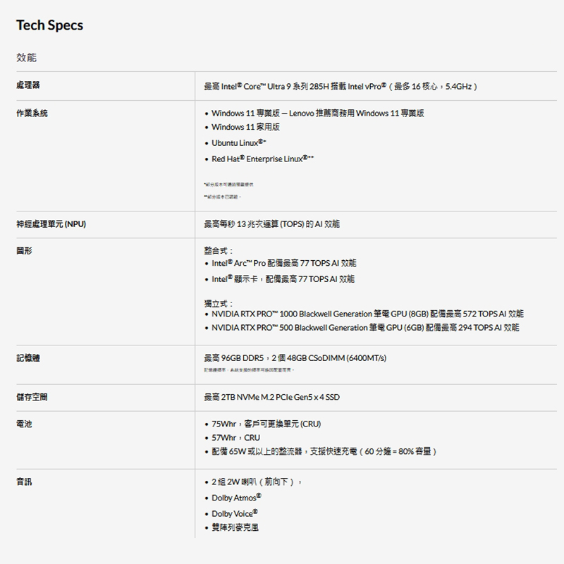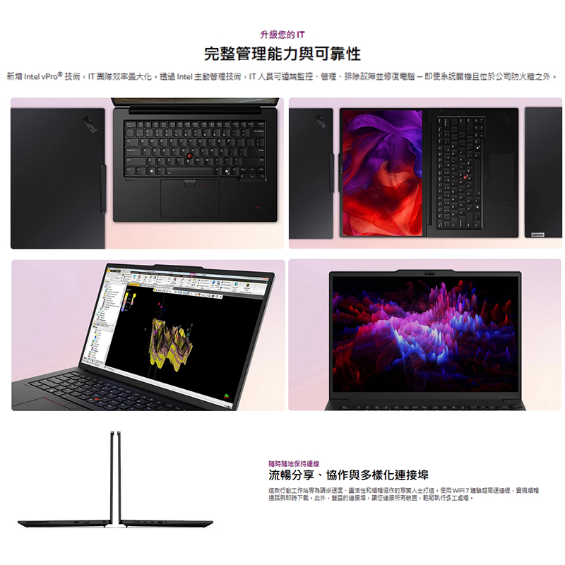 - Intel® Core™ Ultra 7 265H vPro® 處理器 (E 核心最高達 4.50 GHz P 核心最高達 5.30 GHz)