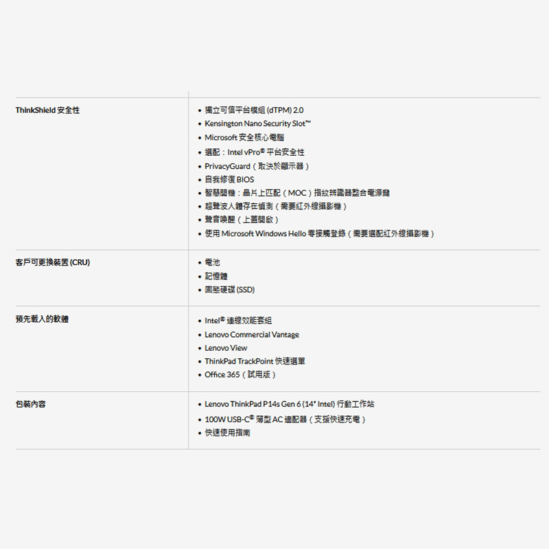 【P系列】Mobile Workstation P14s Gen 6 – NVIDIA RTX PRO™ 1000 Blackwell (21QT004QTW)