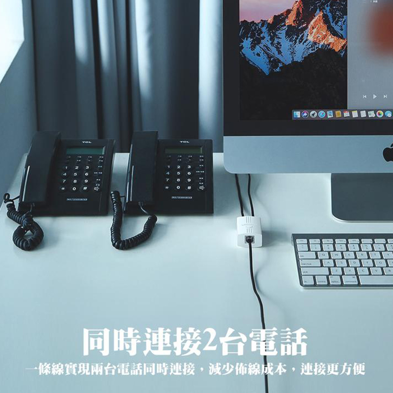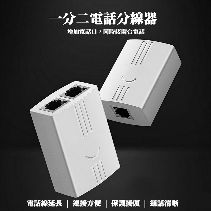 一分二電話盒 電話線一進二出轉接頭,RJ11,6P4C,一分二,三通頭,分歧分支器通用 (6P4C,6P2C)都適用