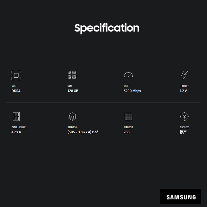 三星 128GB DDR4 3200MHz 2S2R*4 記憶體 M393AAG40M32-CAE SAMSUNG