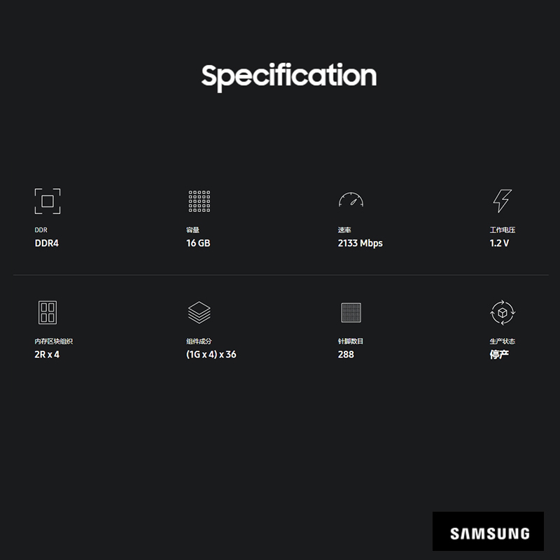 三星 16GB DDR4 2133MHz 2R*8 記憶體 M393A2G40DB0-CPB SAMSUNG