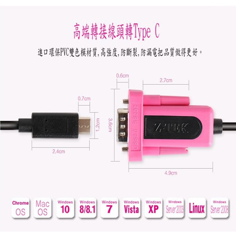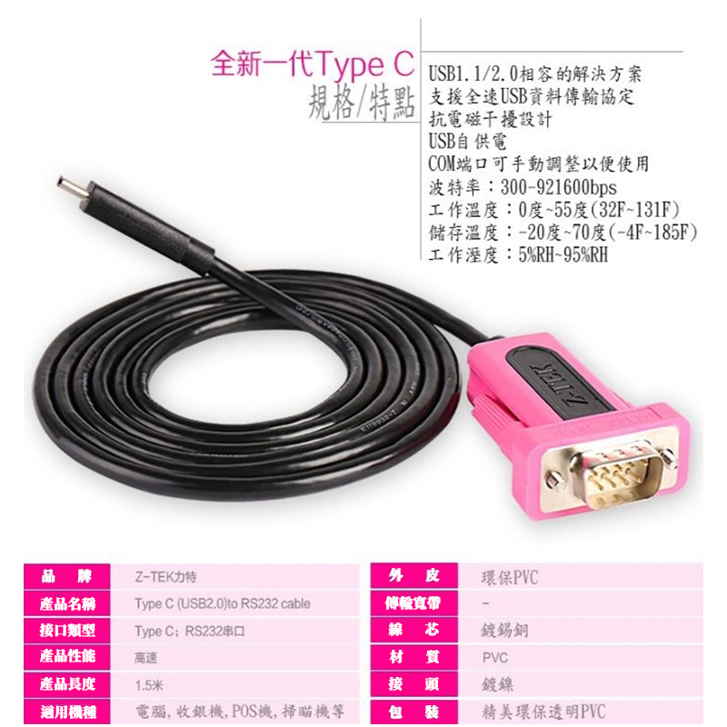 力特 Z-TEK ZE693 Type C to RS232 轉接線 1.5M長 數量