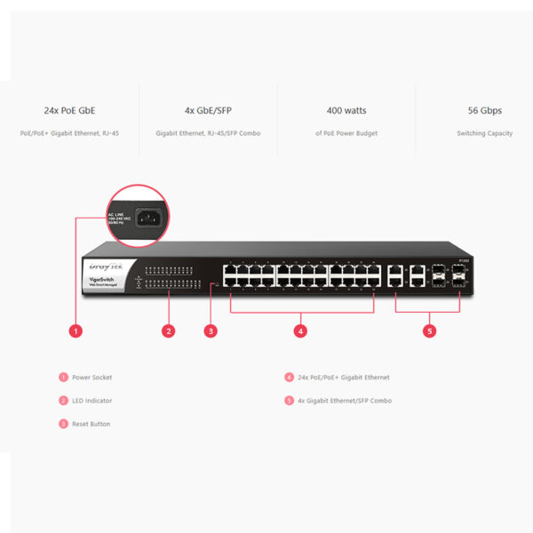 With PoE models, VigorSwitch can also provide first aid to automatically power cycle the particular port to reboot the camera.