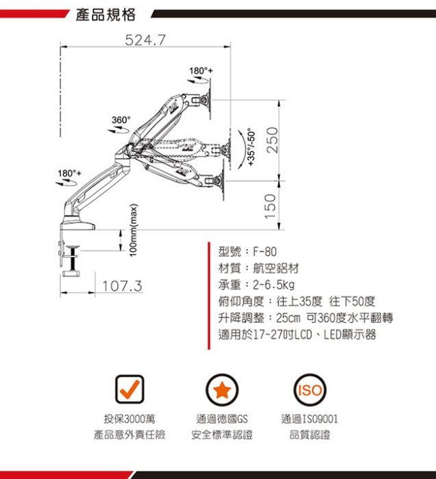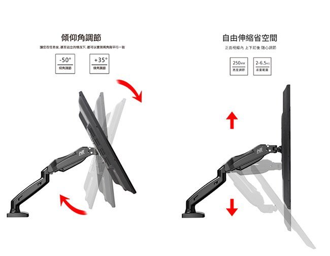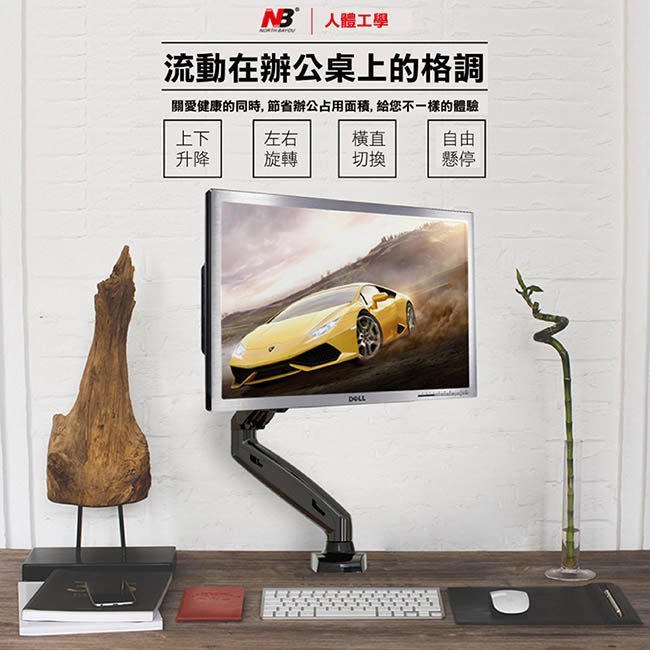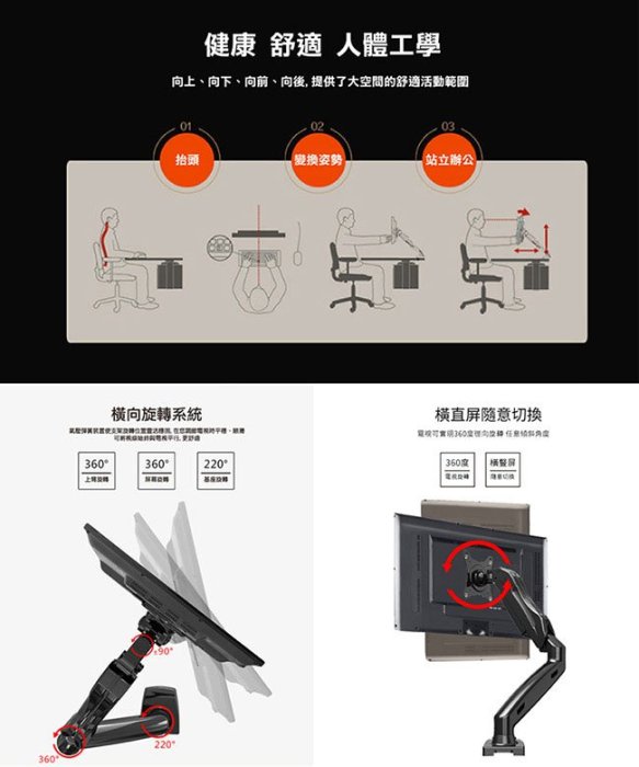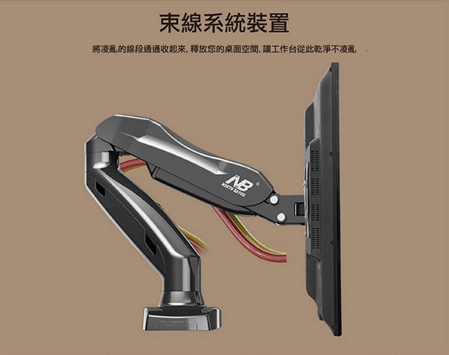 現貨 適用17-27吋 螢幕顯示器支架 電腦螢幕旋轉升降伸縮懸空掛架 氣壓式夾桌穿孔兩用型液晶螢幕手臂架 NB-F80