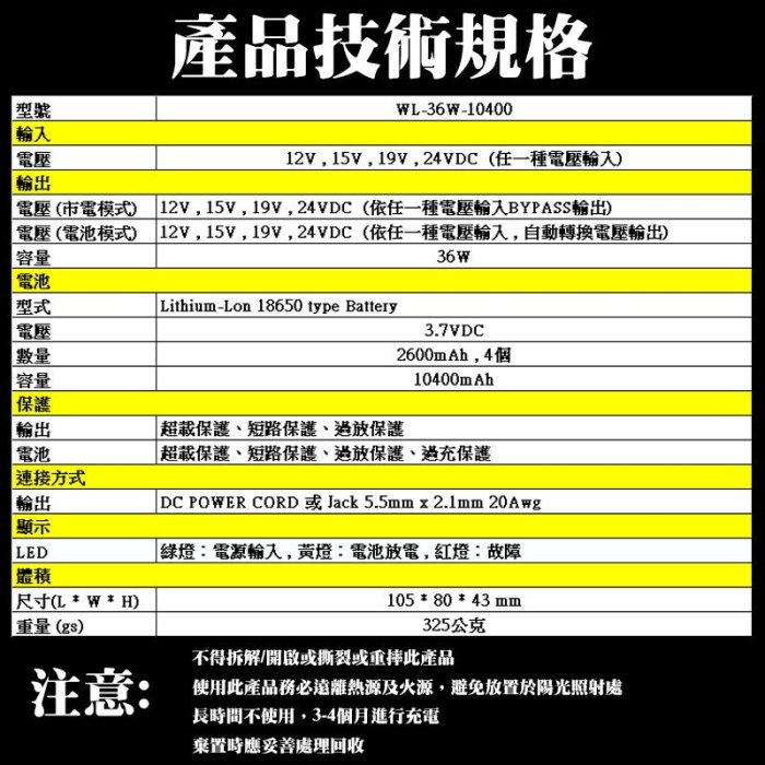 迷你型不斷電系統 小型UPS 10400mAh 12-24V