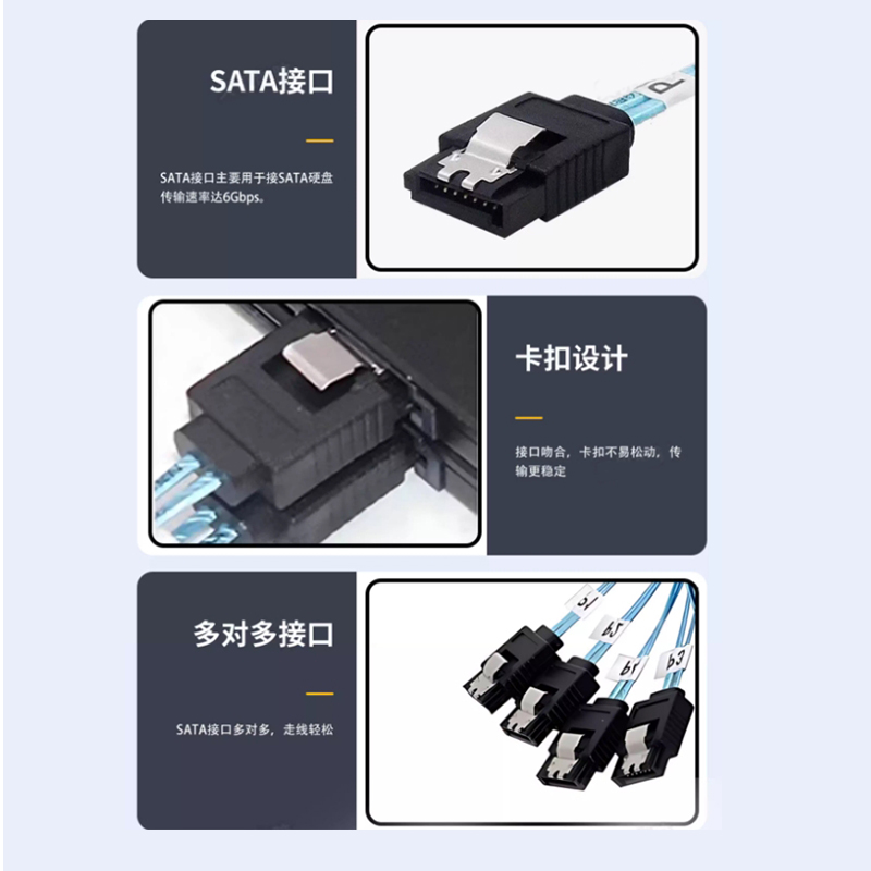 產品規格 名稱:MINISAS SATA線 長度:50公分 接頭:SFF / SATA 接頭:鍍鎳 用途:電腦/伺服器 材質:鍍金無氧銅 外殼:耐磨環保網