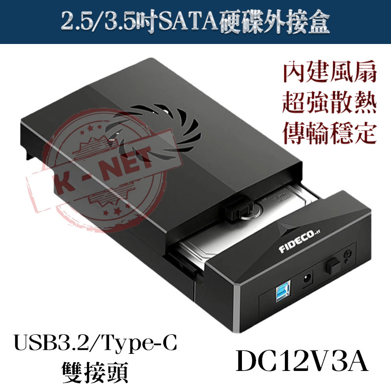 2.5/3.5吋 SATA硬碟外接盒 USB3.2/Type-C雙接頭 內建風扇 超強散熱 DC12V3A 附收納包 數量