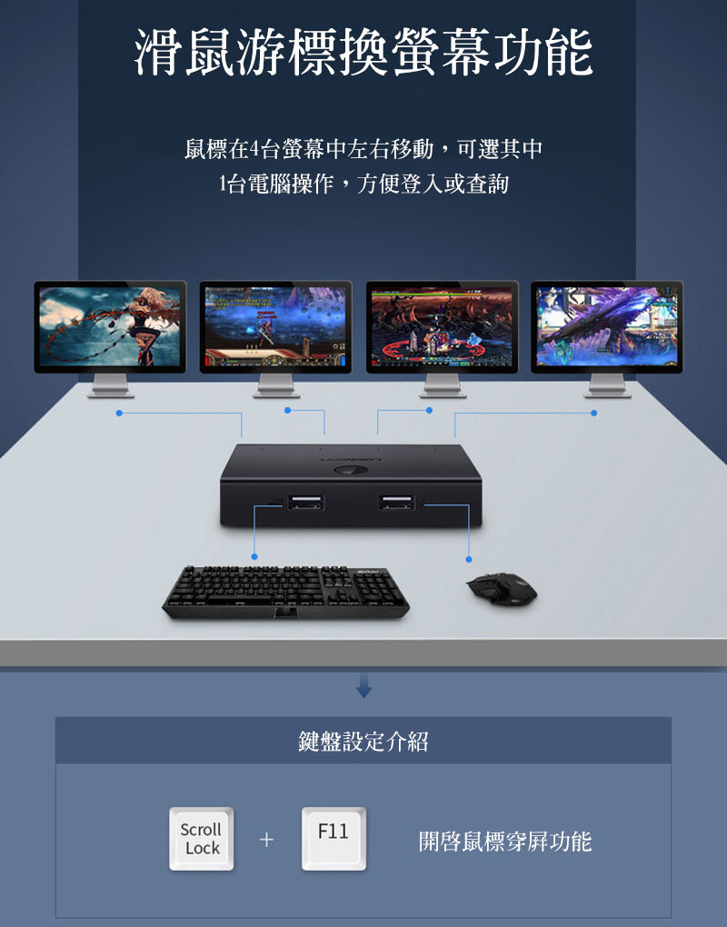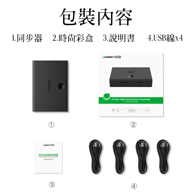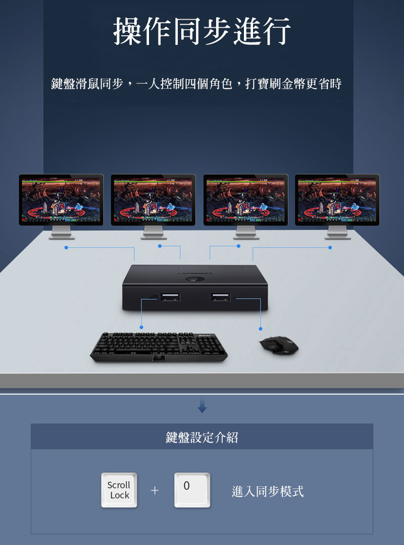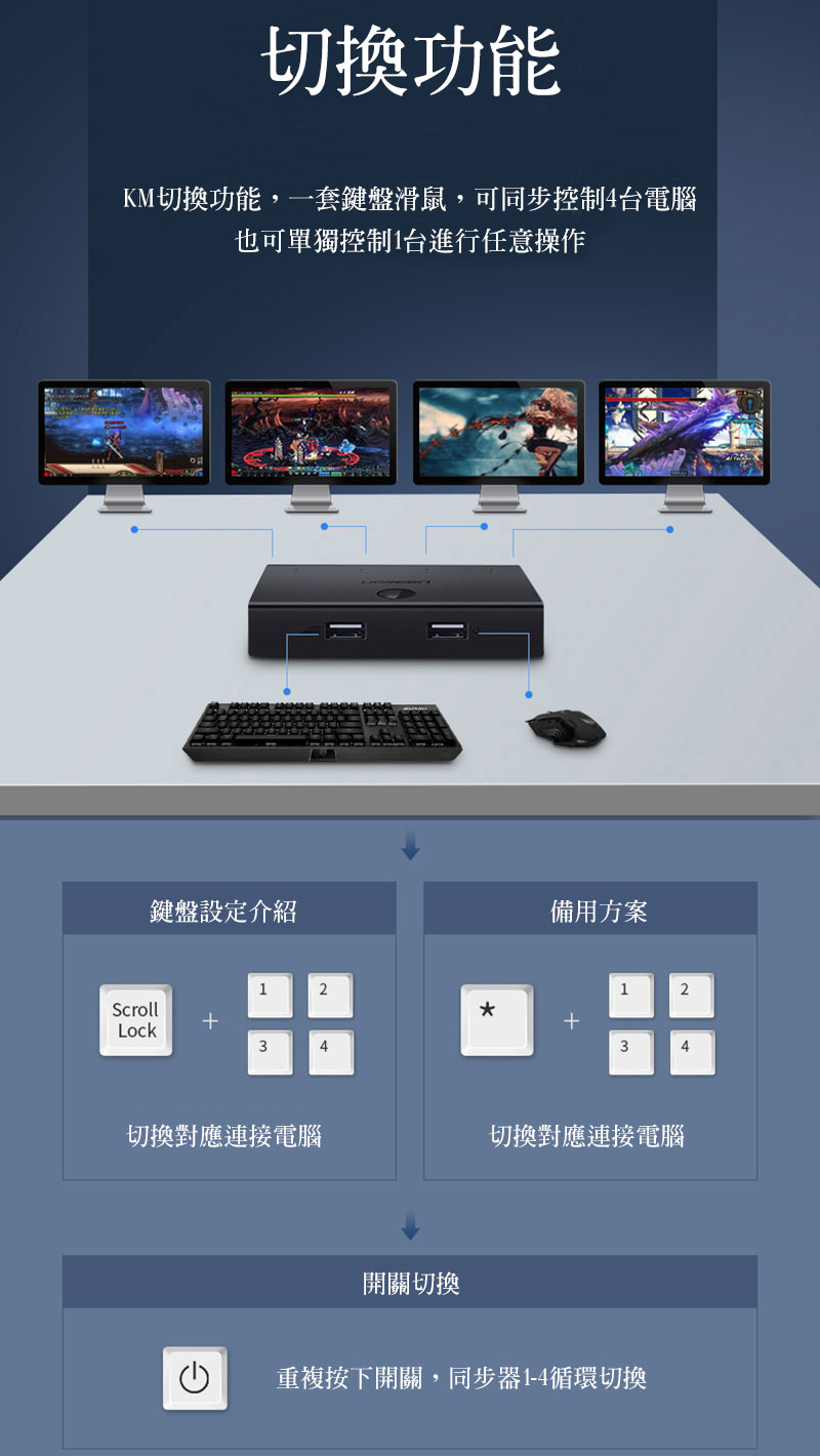 4埠 USB KVM 同步控制器 升級/打寶 四台電腦 同步操作 一進四出 鍵盤滑鼠 同步器