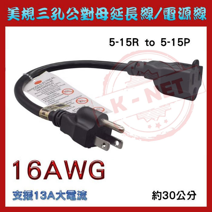5-15P to 5-15R 電源線 延長插頭 30公分 PDU UPS電源 伺服器 美規三孔公對母延長線