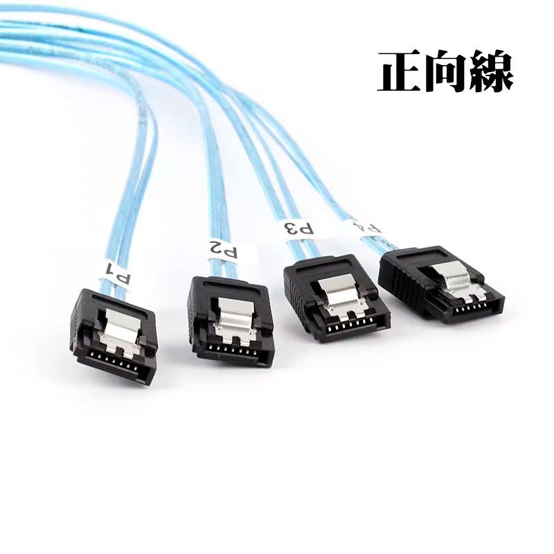 2.正向線:用於主機板上或陣列卡上的12G MINI SAS HD SFF8643接頭連接至硬碟籠槽板上的SATA資料介面或直連SATA硬碟
