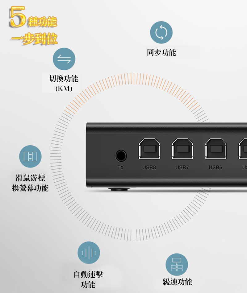 / 8埠 USB KVM 同步控制器 升級/打寶 八台電腦 同步操作一進八出 鍵盤滑鼠 同步器