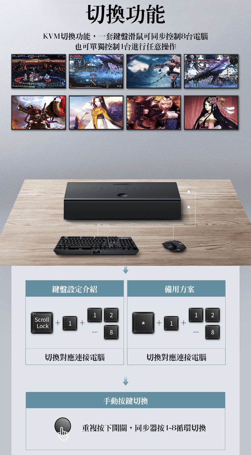 8埠 USB KVM 同步控制器 升級/打寶 八台電腦 同步操作一進八出 鍵盤滑鼠 同步器 數量