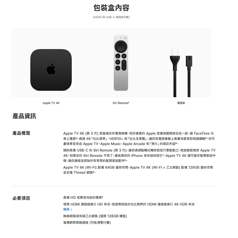 品名:Apple TV 4K 128GB (Wi-Fi + 乙太網路機型)