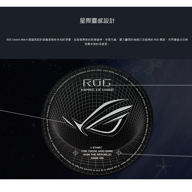 星際靈感設計:融合宇宙元素、模仿黑洞的重力曲線以及經典的 ROG 標誌