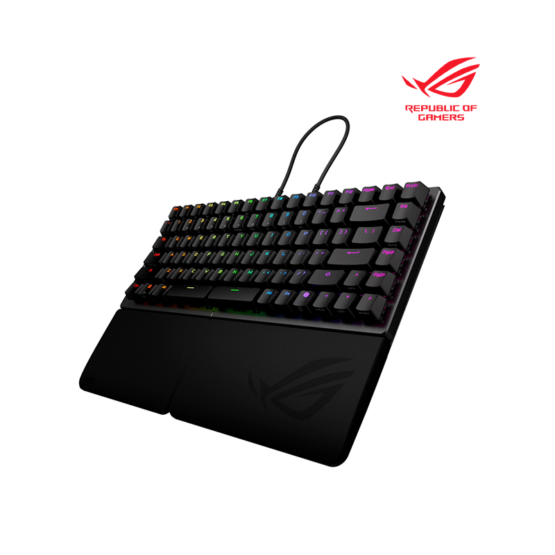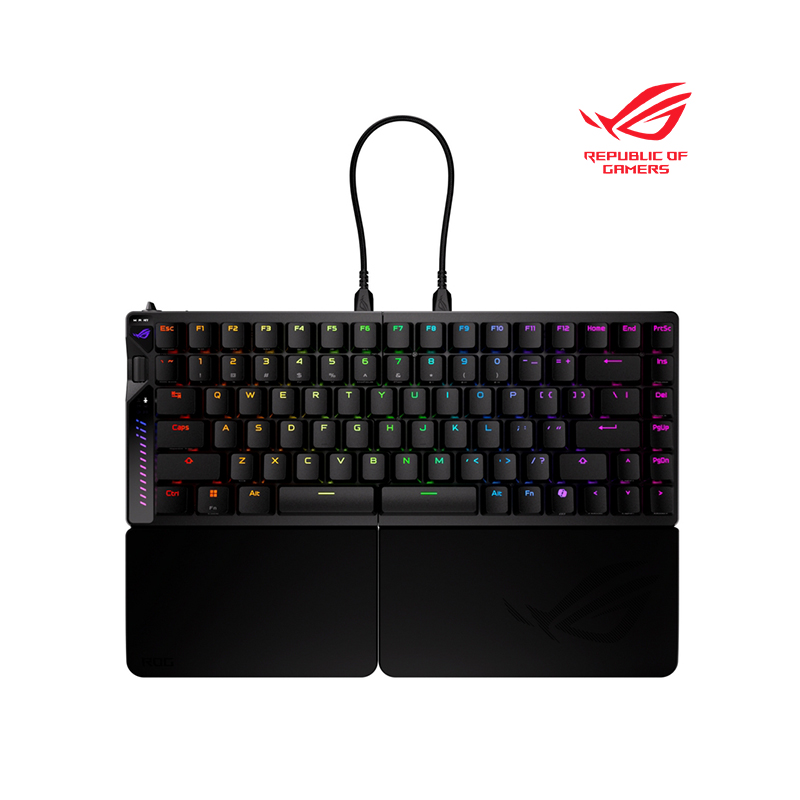 1 x ROG Falcata,2 x Wrist rest,8 x Keyboard feet,1 x Keycap puller,1 x USB cable,2 x Link cable,6 x Screw,1 x Extender,1 x USB-C to A adapter,1 x Allen Wrench,1 x ROG sticker,1 x Ctrl keycap,1 x Quick start guide,1 x Warranty booklet.