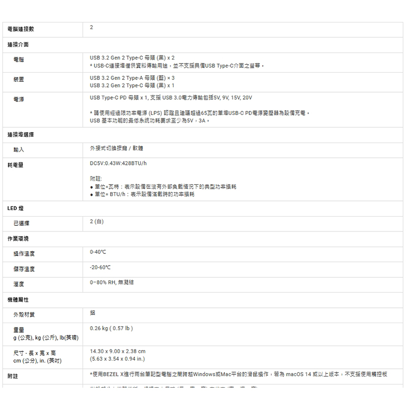LED 指示燈– 使用者可輕鬆確認目前所使用的電腦