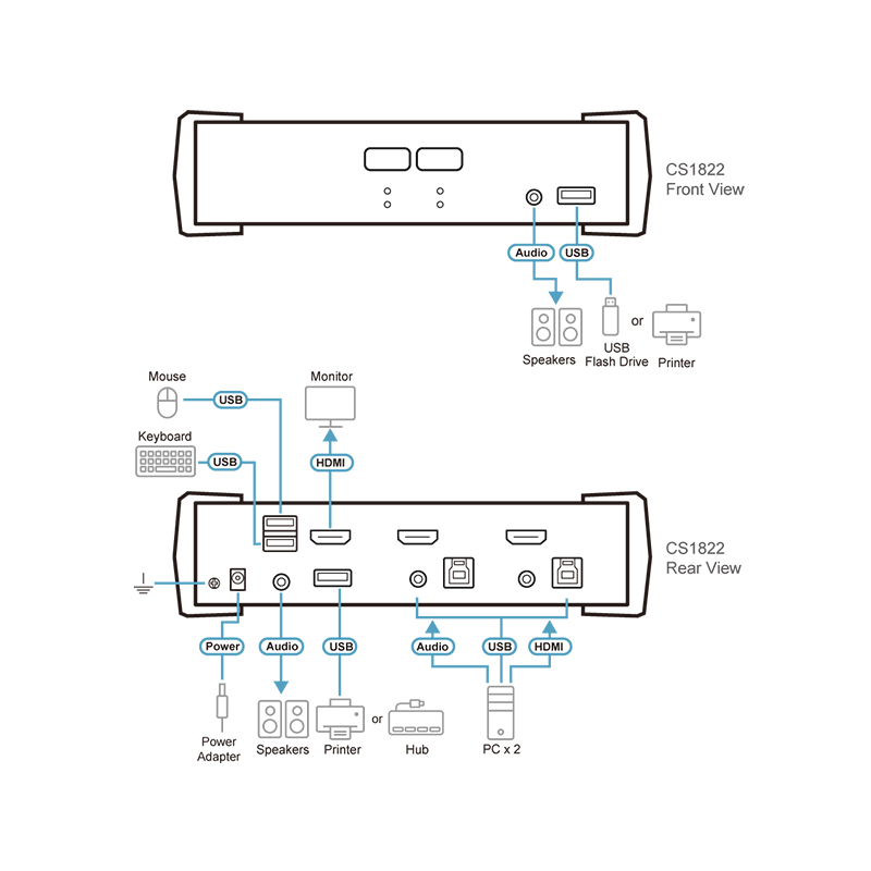 1x CS1822 2埠 USB 3.0 4K HDMI KVMP™ 多電腦切換器