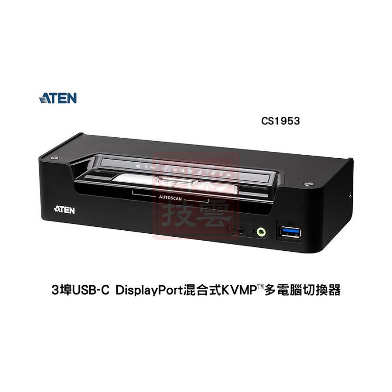 ATEN 宏正 3埠 USB-C DisplayPort 混合式 KVMP™ 多電腦切換器 CS1953
