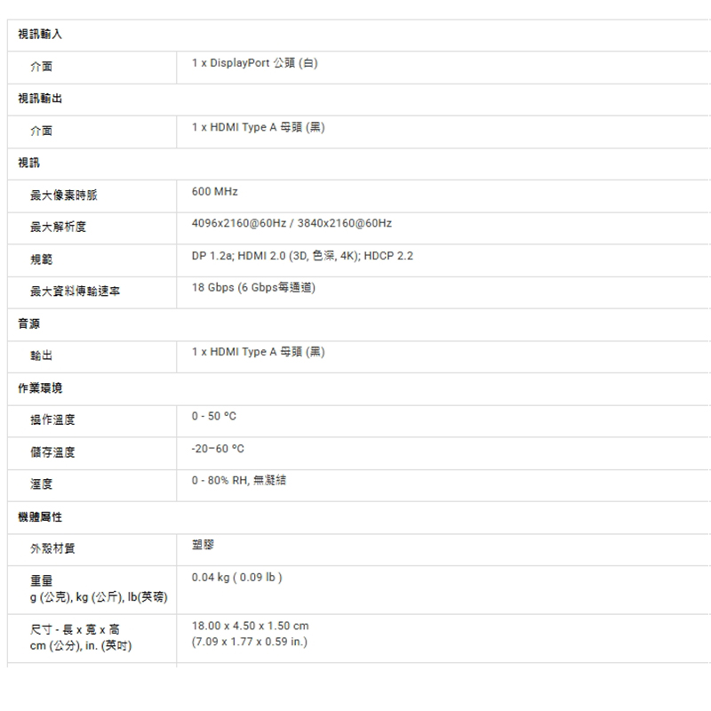 1x VC986B True 4K DisplayPort轉HDMI主動式轉接器