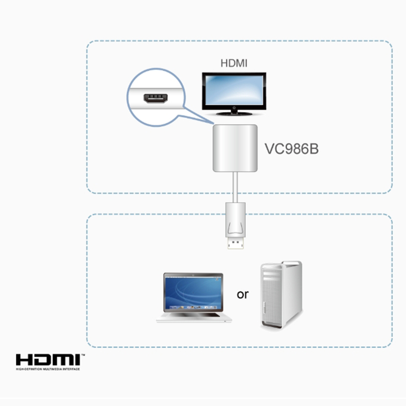 VC986B為一款主動式DisplayPort轉HDMI轉接器,可讓您的DisplayPort設備連接至任何HDMI顯示裝置,支援傳遞True 4K高解析度的視訊與音訊。