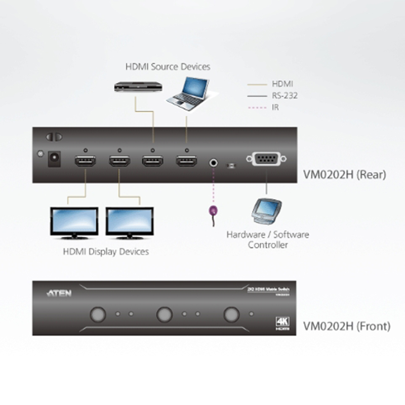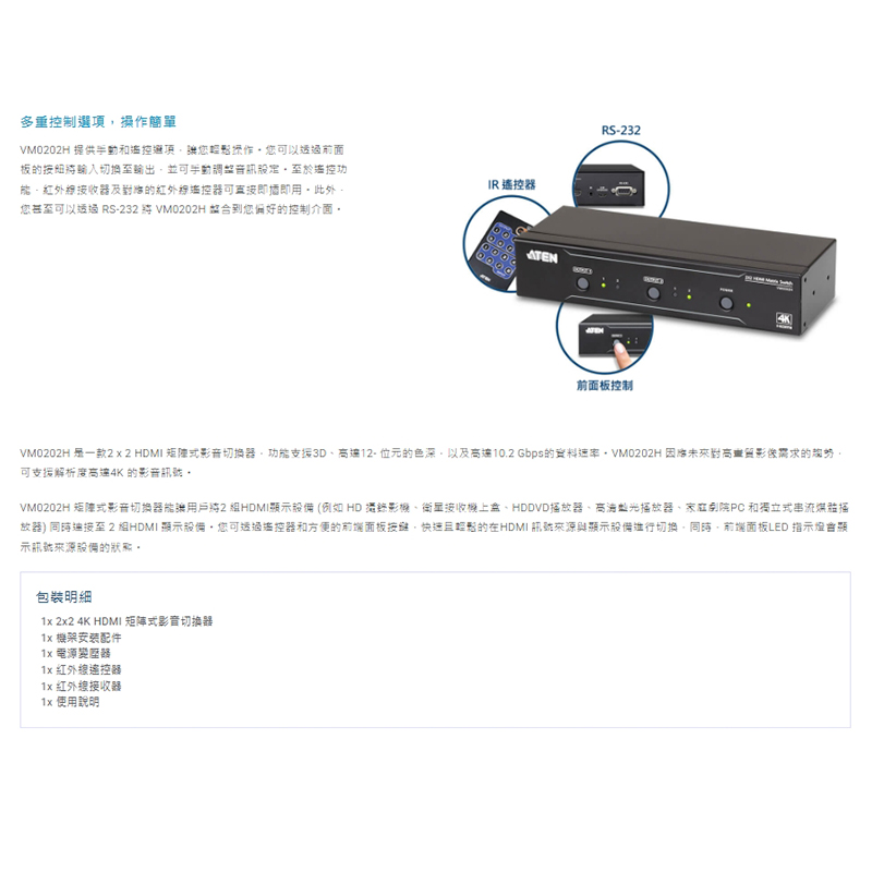 多重控制方式 — 可透過前端面板按鍵、IR 遙控器和RS-232 連接進行操控