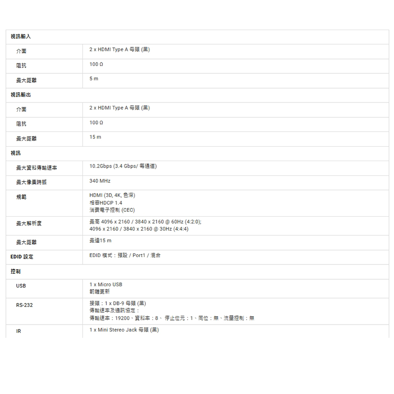 HDMI (3D、色深、4K);HDCP 1.4 相容