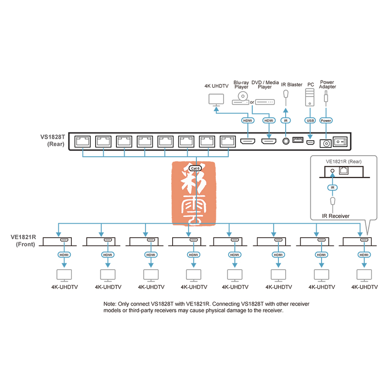 • 8 x VE1821R 4K HDMI Cat 6 視訊延長器