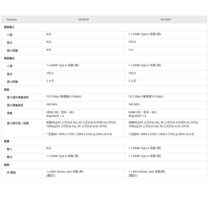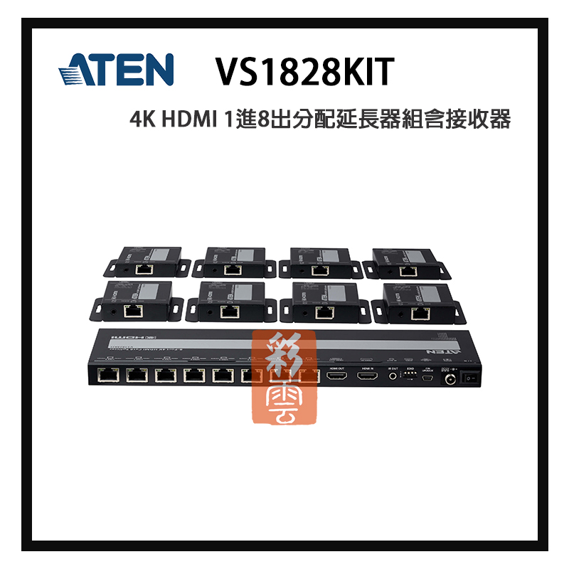 ATEN 4K HDMI 1進8出分配延長器組含接收器 (VS1828KIT)