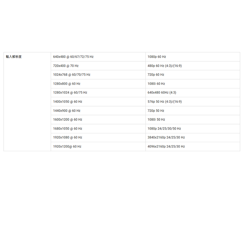 • 解析度支援高達4K @ 30 Hz (4:4:4)