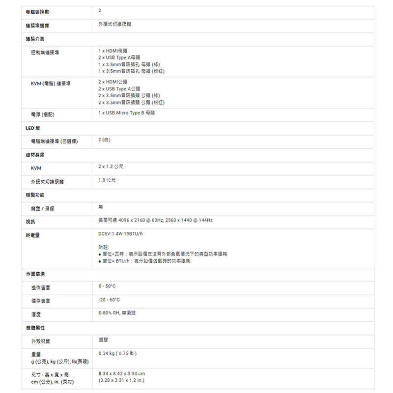 • 高畫質視訊解析度 – 高達4096 x 2160 @ 60Hz