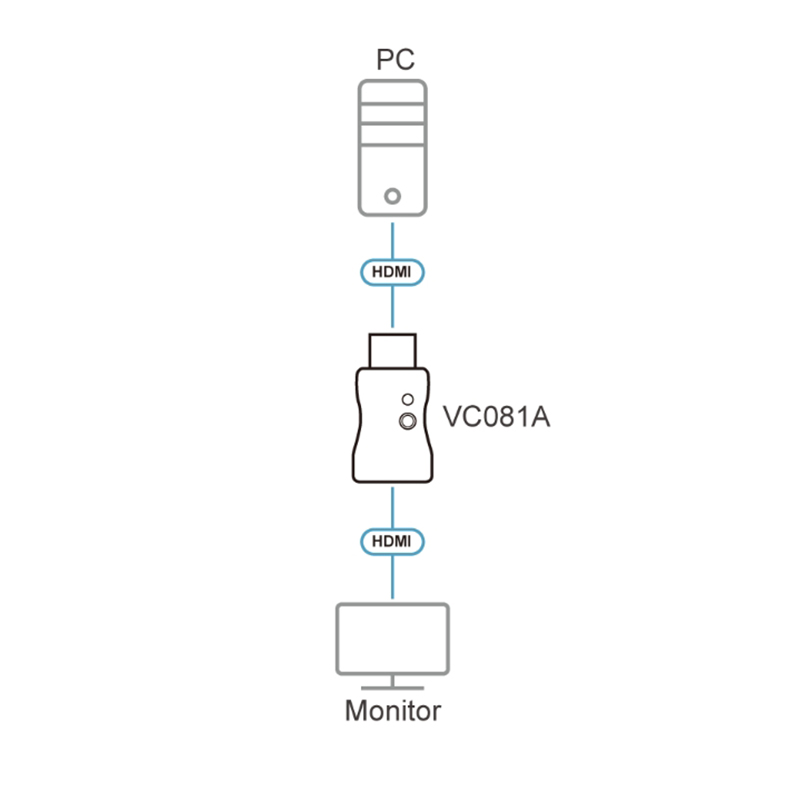 VC081A True 4K HDMI EDID模擬器可有效解決用戶在使用AV或KVM延伸器、切換器、分配器時所遇到的EDID相關問題,不僅能學習、模擬及儲存視訊顯示裝置的EDID數據,更提供穩定的4K影像傳輸,排除影音設備播放或安裝整合上因EDID錯誤而造成無法出畫或畫面閃爍等異常狀況。
