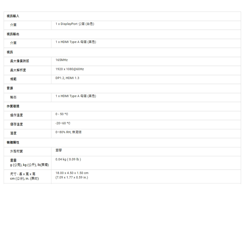 1x DisplayPort轉HDMI轉接器