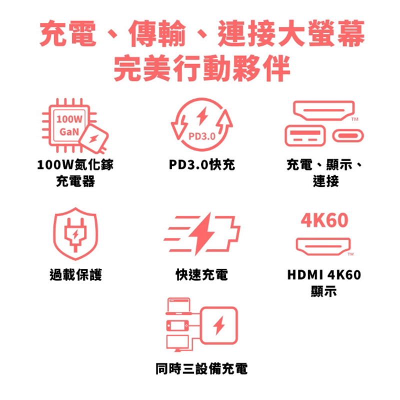 100W GaN高效能充電/支援三台設