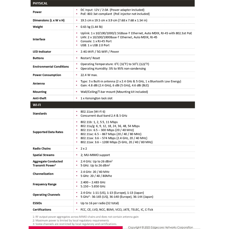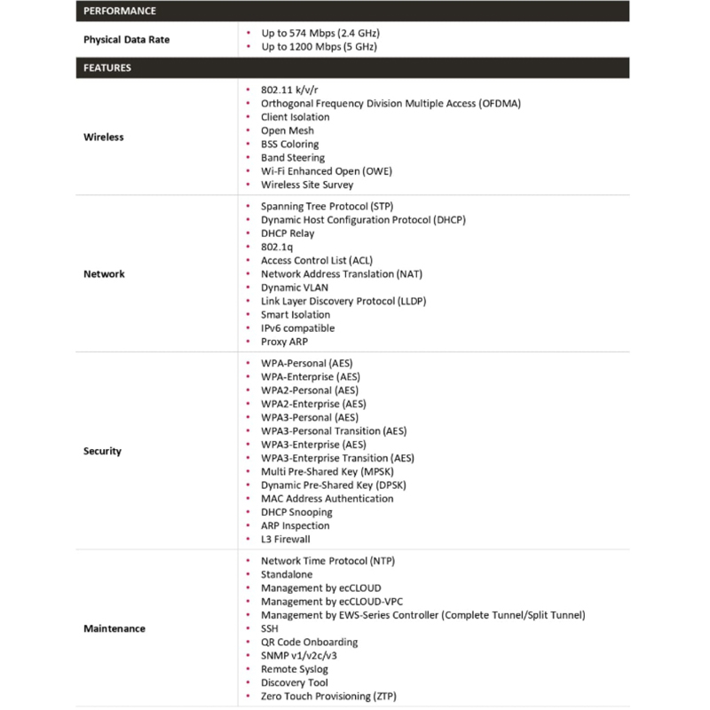 EAP101 是一款企業級、雙頻併發 Wi-Fi 6 室內無線AP。
