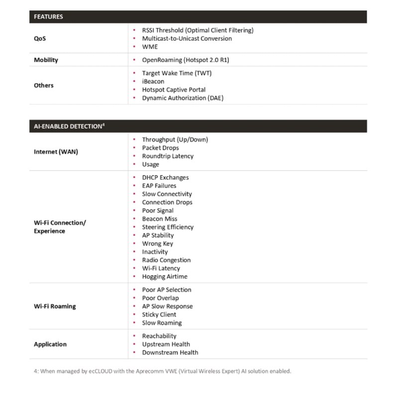 EAP101 內建 Bluetooth Low Energy (BLE) 無線電,可支援 iBeacon、存在感知 (presence) 等加值應用。