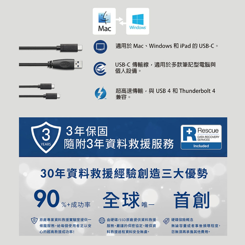 原廠3年保固/ 隨附3年資料救援
