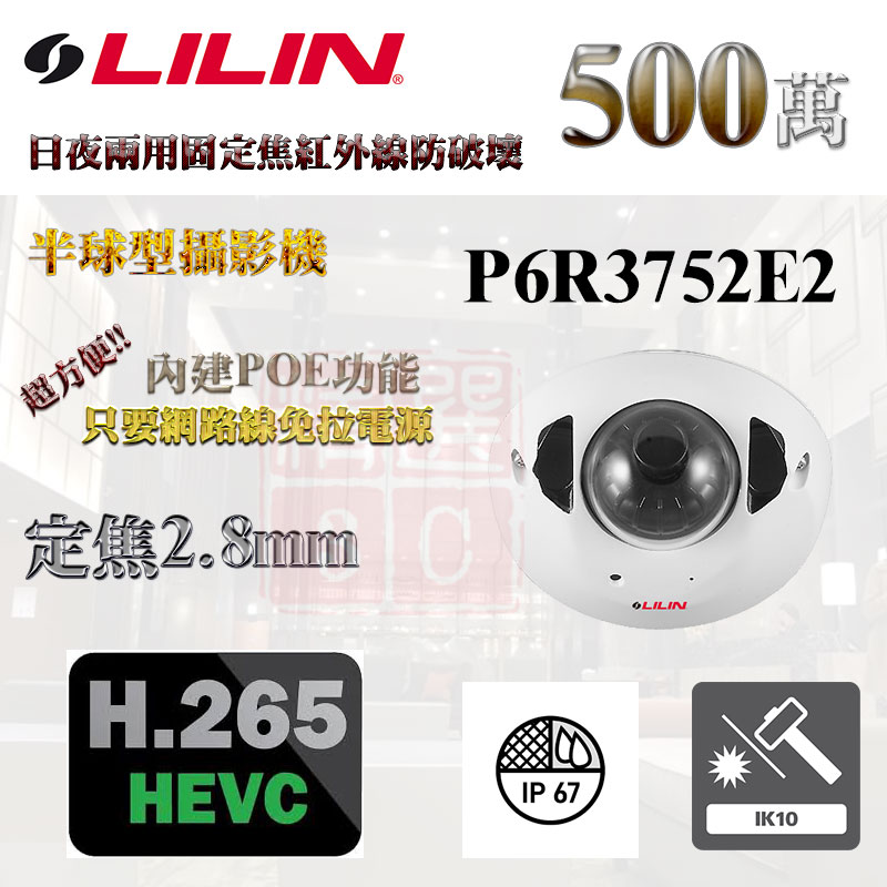 / Lilin 利凌 日夜兩用 500萬 固定焦2.8mm 15米紅外線 防破壞 半球型攝影機 P6R3752E2