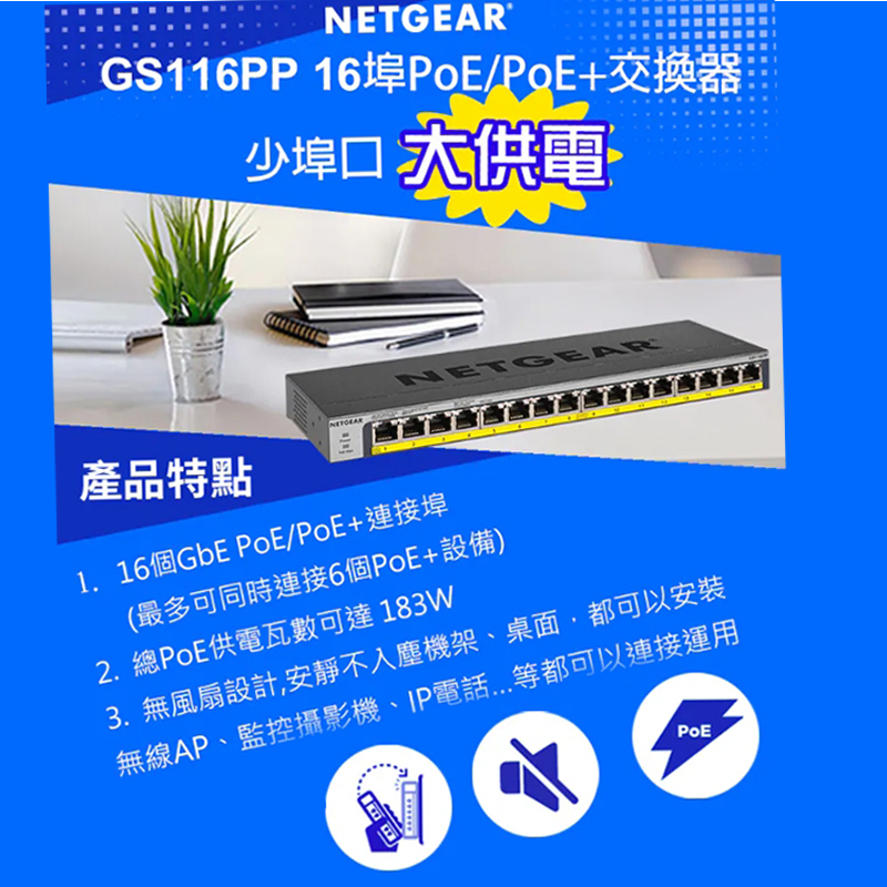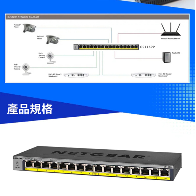 / NETGEAR GS116PP 16 埠 Gigabit PoE PoE 無網管交換器