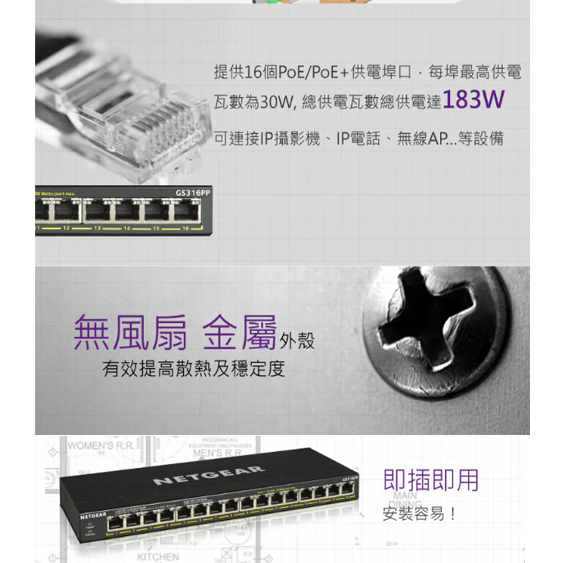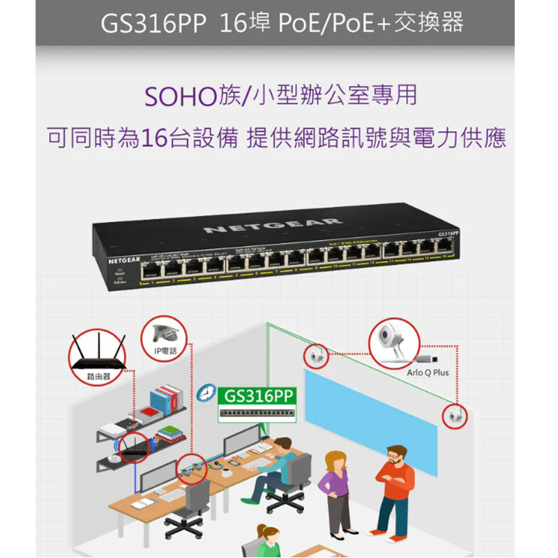 / NETGEAR GS316PP 16埠 Gigabit PoE+ 無網管交換器