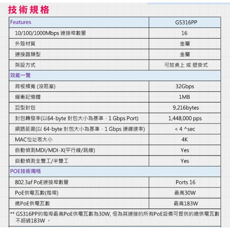 PoE供電瓦數達183W 輸出