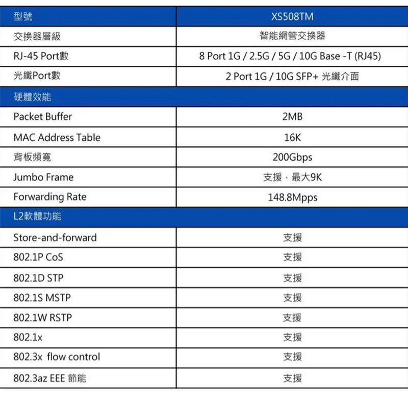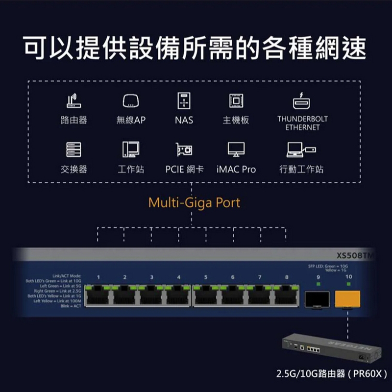 - 8個 1G/2.5G/5G/10G Multi-Gig連接埠