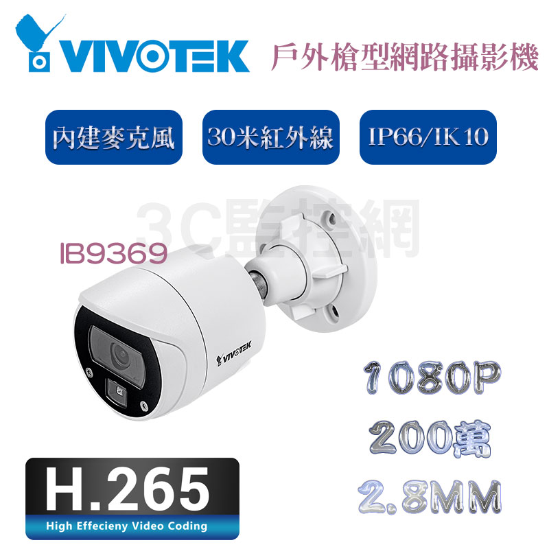 / VIVOTEK 晶睿 200萬 1080P 30米紅外線 戶外槍型 網路攝影機 H.265 內建麥克風 IB9369
